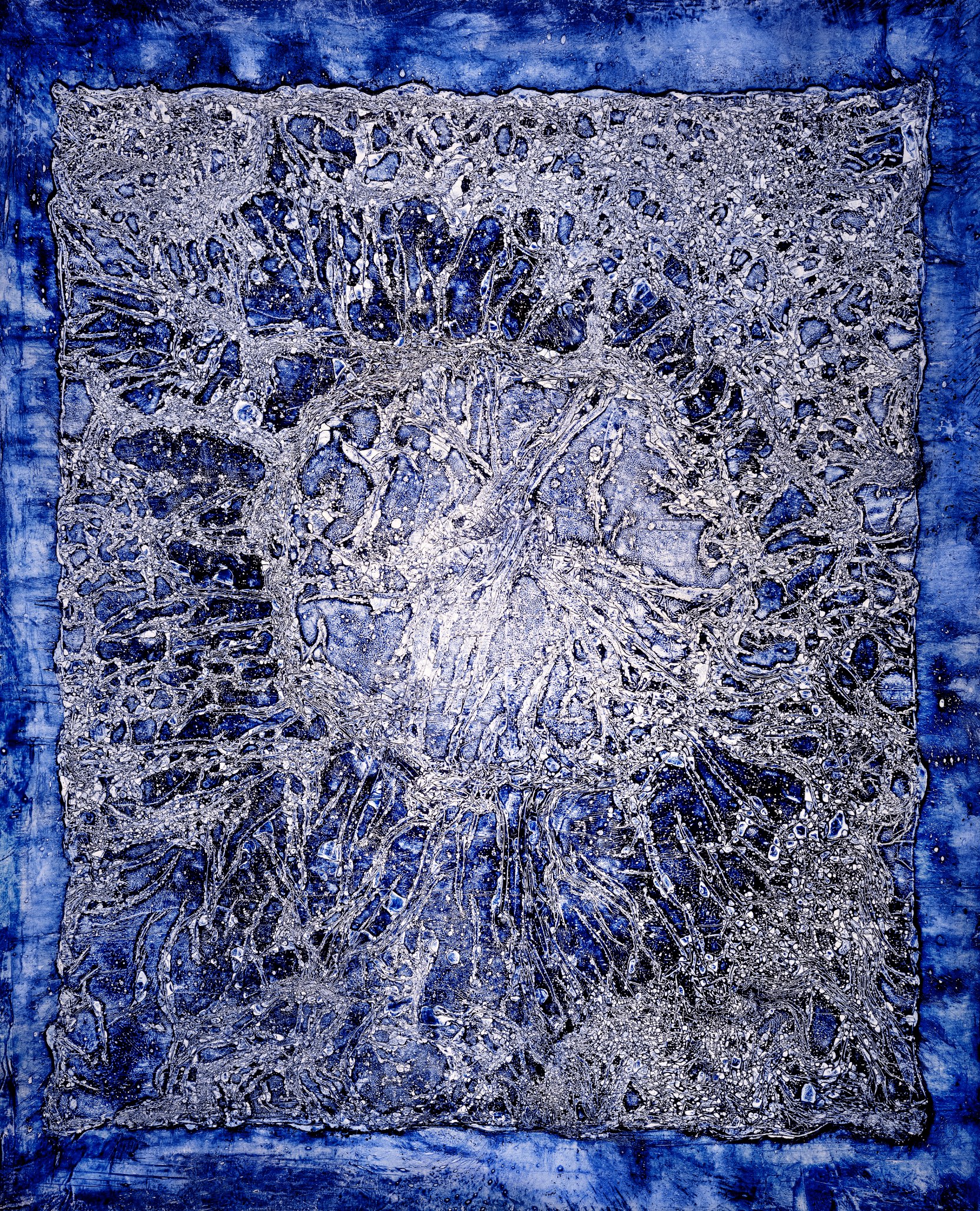 "Like the goddess Persephone, daughter of Demeter, who had to cross the darkness to be reborn in the light of spring, Evi Keller reconnects with the buried memory of materials to lead her work towards the light. Matter-Light (…) unfolds in different mediums: sculptures, paintings, photographs, videos, sounds and performances. Like an alchemist, the artist transmutes and sublimates a vibrant material and engraves the spiritual in it: an embodied, immediate relationship is then created with her work that surrounds us like living skin. From then on, her creation, the very place of epiphanic apparitions, opens up to an "other" dimension and connects us to a "living cosmos", to use the expression of the anthropologist Edgar Morin. Her gesture subtly brings into play the body and the mind in resonance with a world in perpetual motion. (…)"